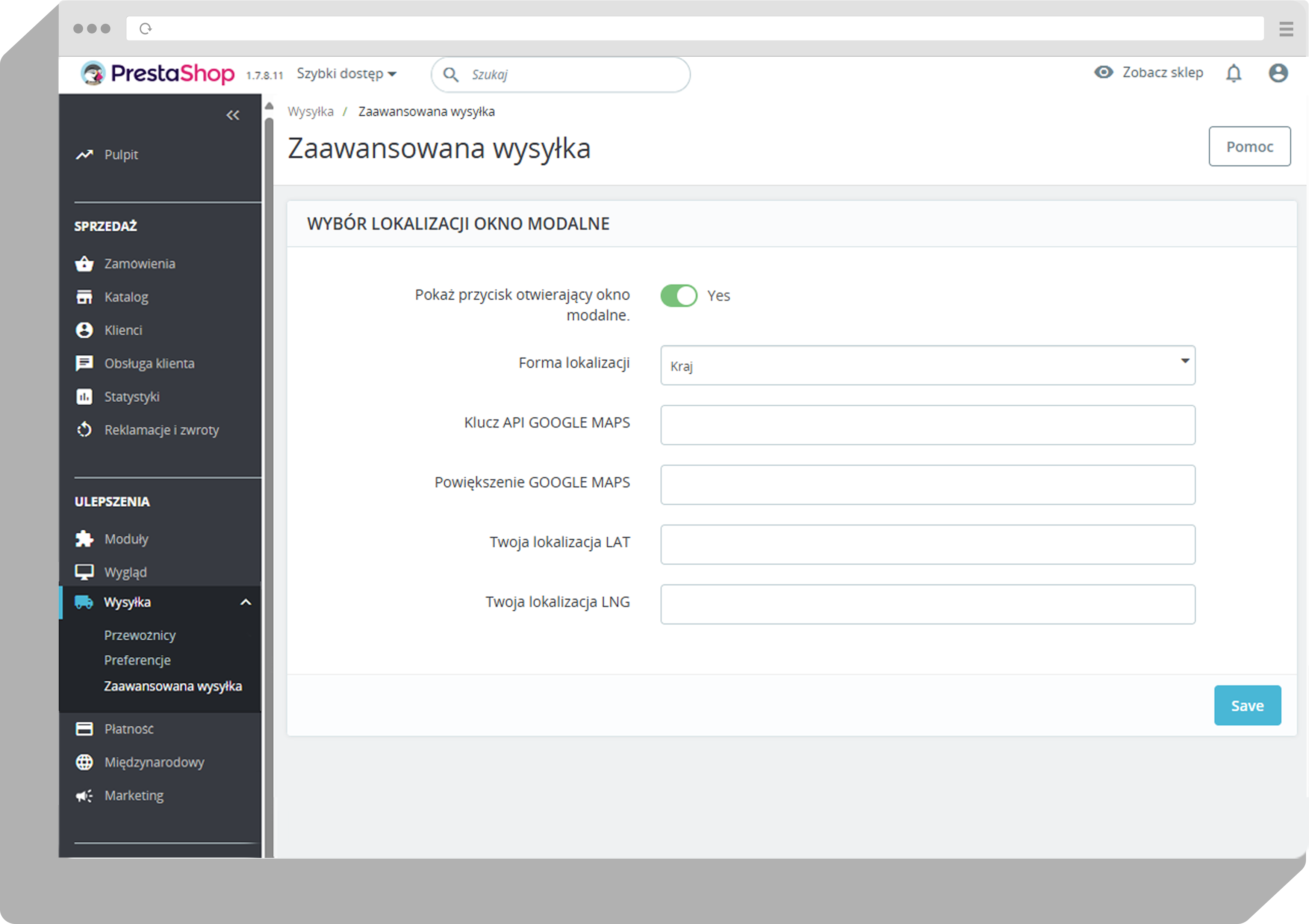 - Forma lokalizacji – Wybierz sposób określenia lokalizacji: Kraj lub Google Maps.